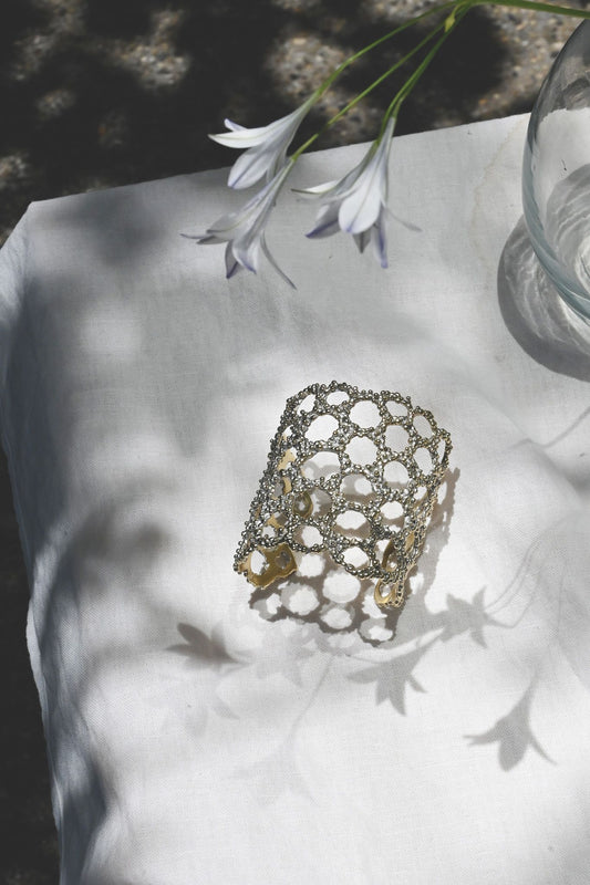 ダニエラデマルキが編み出した、ドロパージュという技法は、メタル素材に溶かしドロッピングして重ねあわす技法です。数あるイタリアのジュエラーの中でも、これほどまでに丁寧に職人の手によって一つ一つ手作りで生み出されてるアクセサリーは異例でしょう。