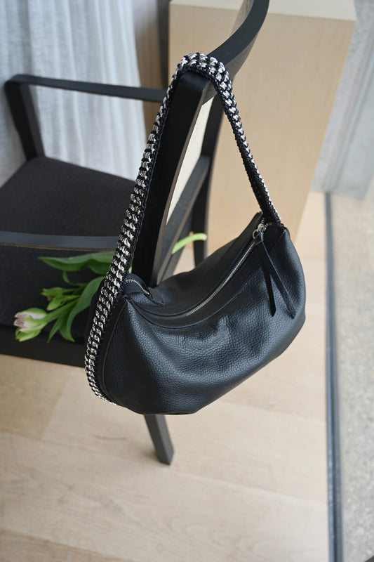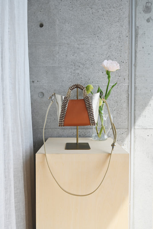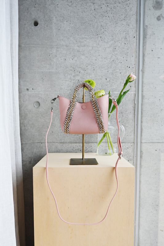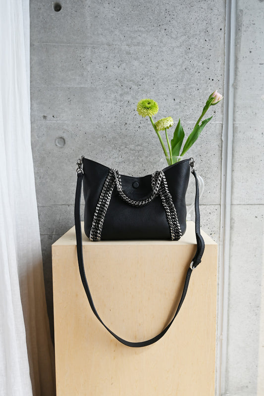2WAY チェーン レザー トートバッグ SSサイズ (ショルダーベルト付)