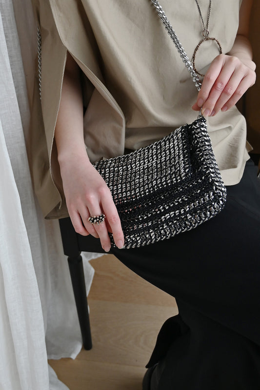 AILAで人気のチェーンの存在感があり、スタイリッシュなデザインのde coutureバッグ。ミニマルなものから大容量サイズの トート バッグまでバリエーションが豊富で機能的。ハンドバッグは、2wayで斜め がけ や肩がけもできます。また、小物 やアクセサリーを入れておけるストラップ付きのポーチも付いていてコンパクトに収納できるのが とても 便利!財布としても使えるので通勤 やお出かけ 用 にもぴったりです。