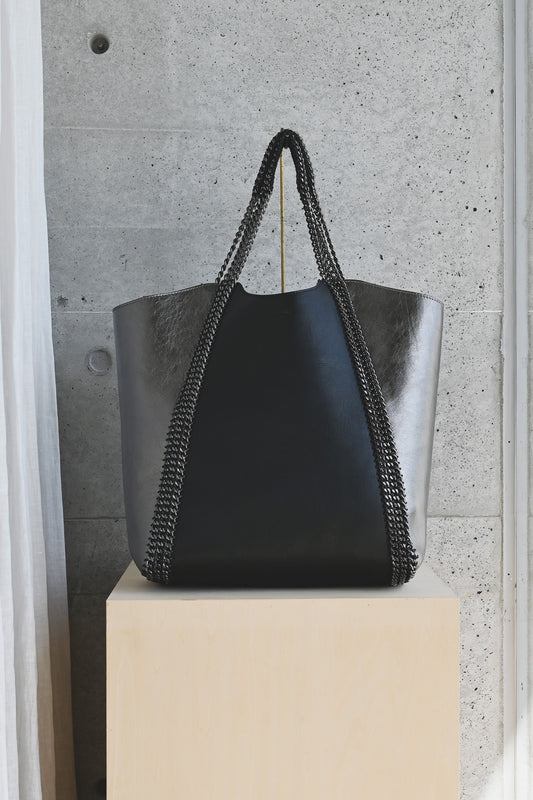 チェーン レザー トートバッグ L size (ポーチ付)
