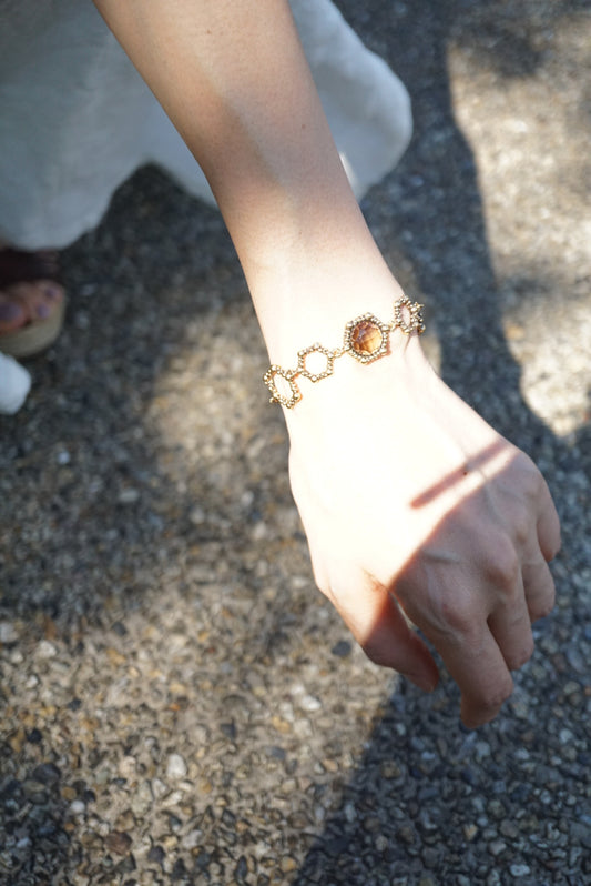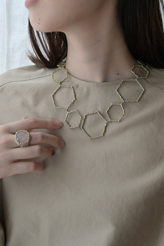 ミツバチの住まいである六角形の巣をモチーフにしています。自然の建築物である巣に、ミツバチの勤勉さと情熱をオマージュしています。身に着けると自然の崇高さを感じさせてくれるコレクションです。