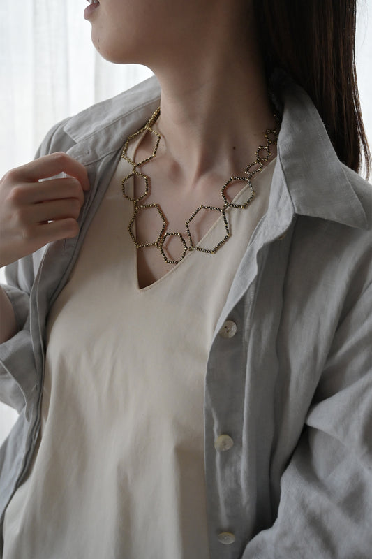 ミツバチの住まいである六角形の巣をモチーフにしています。自然の建築物である巣に、ミツバチの勤勉さと情熱をオマージュしています。身に着けると自然の崇高さを感じさせてくれるコレクションです。