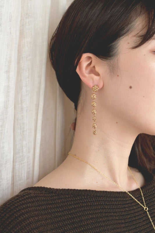 「Frutti di bosco」は、イタリア語で「森の果実」を意味します。その名の通り、まるで自然の中で見つけた果実のような瑞々しさを表現したコレクションです。繊細さのあるデザインが女性らしく、ささやかなギフトにもおすすめのジュエリー。真鍮のゴールド カラー のバリエーションもあり、ぴったりな1点を探して いただけ ます。そんな、シンプルな服装にさりげなく映えるアクセサリーコレクション「Frutti di bosco」のご紹介。