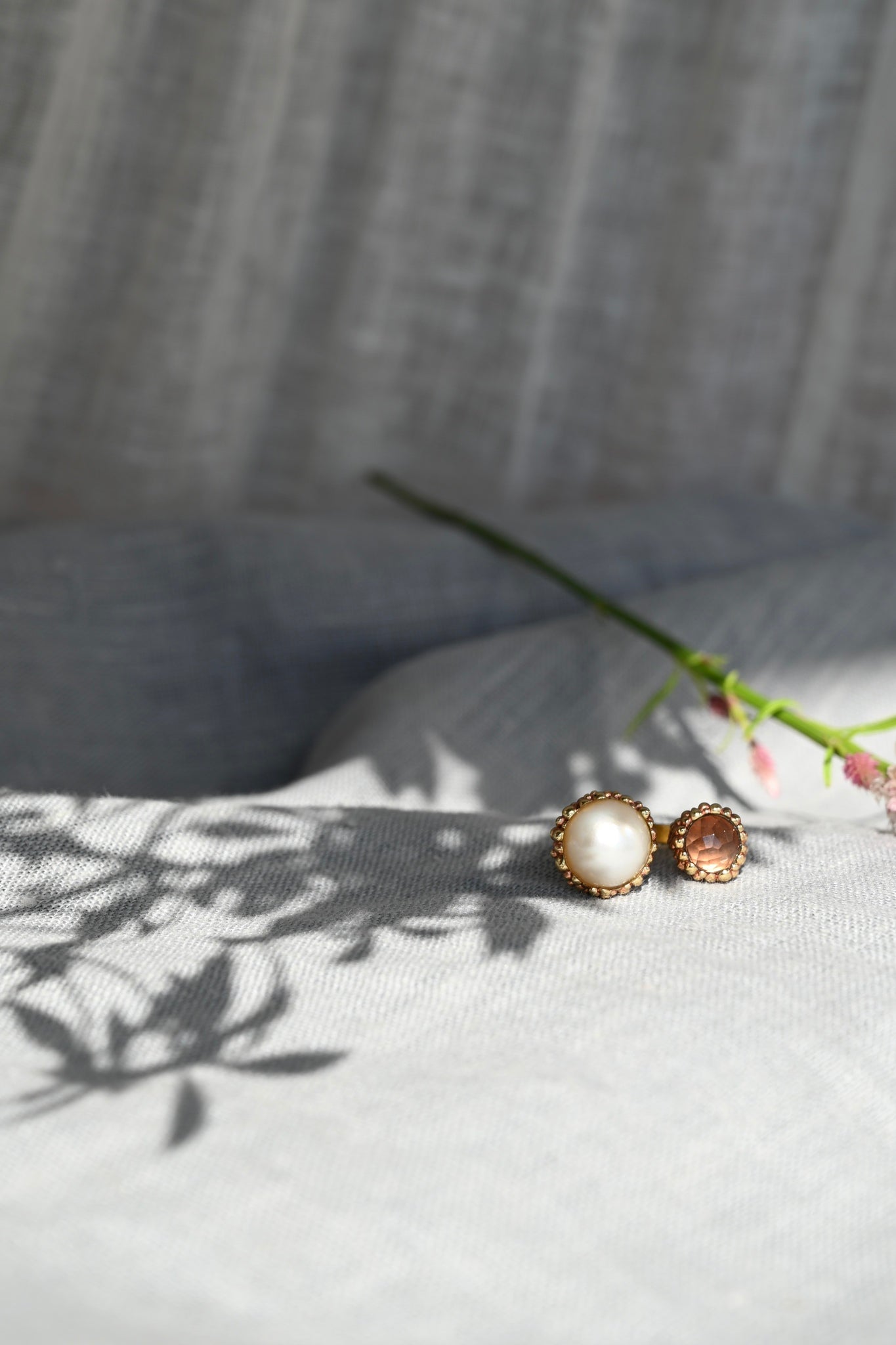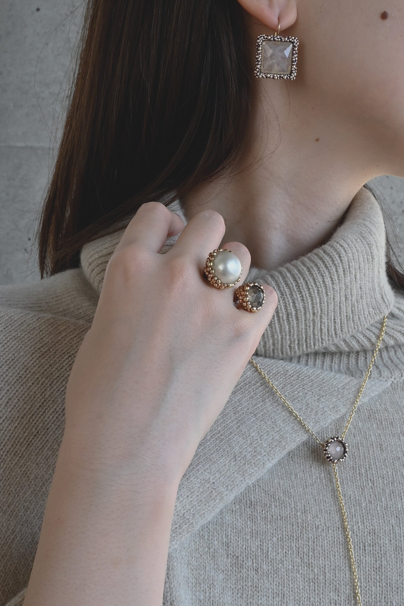 リング(Ring)[AN0232 ORA パール/スモーキークオーツ]Free Size