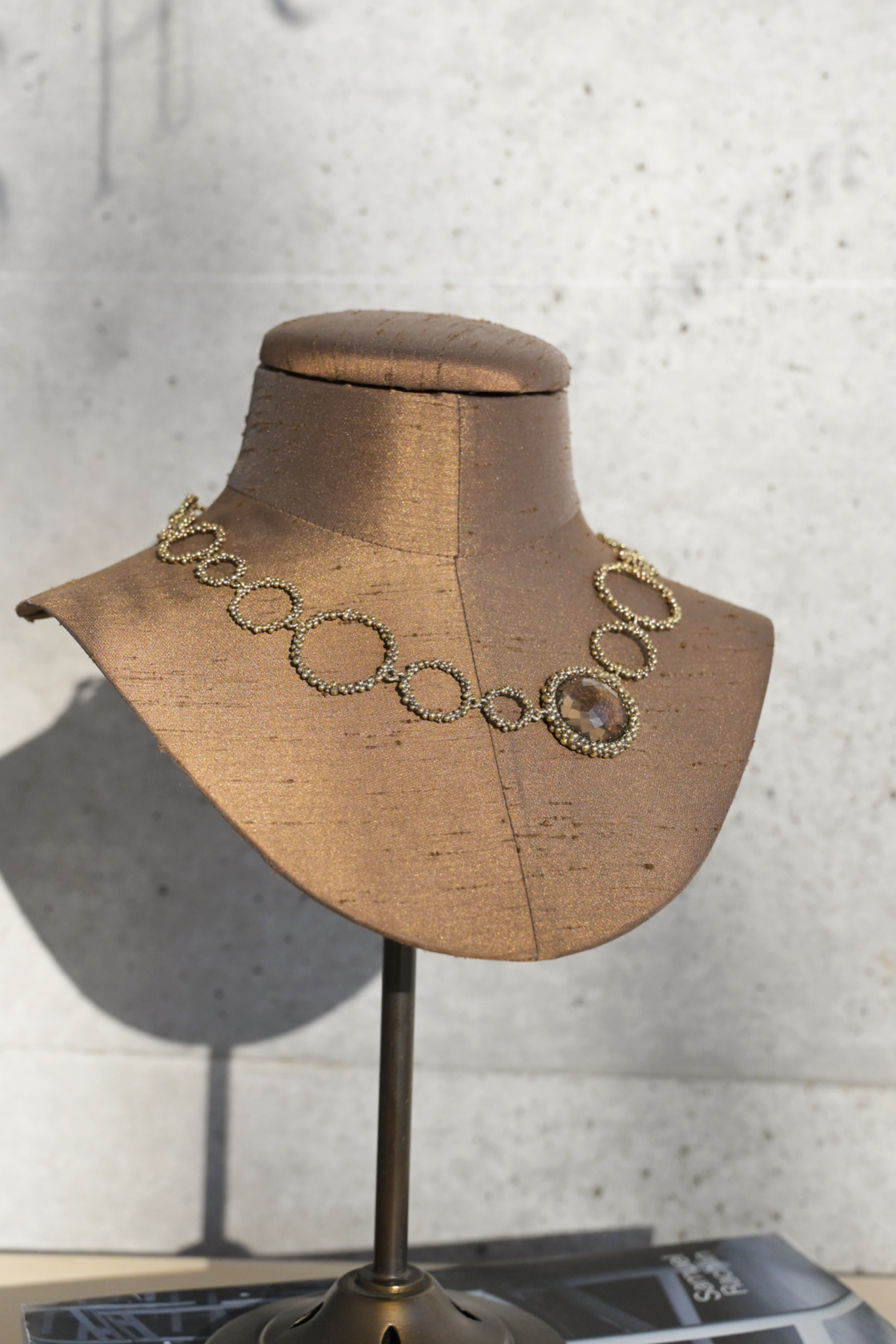 天然石とブロンズやシルバーを彫刻のように組み立てるダニエラのジュエリーは、これまでのジュエリーの常識とはかけ離れ、女性が持つ美しさの可能性を際限まで広げてくれる究極のジュエリー。イタリア国内だけでなく、フランスをはじめ、ヨーロッパでも話題のジュエラーです。