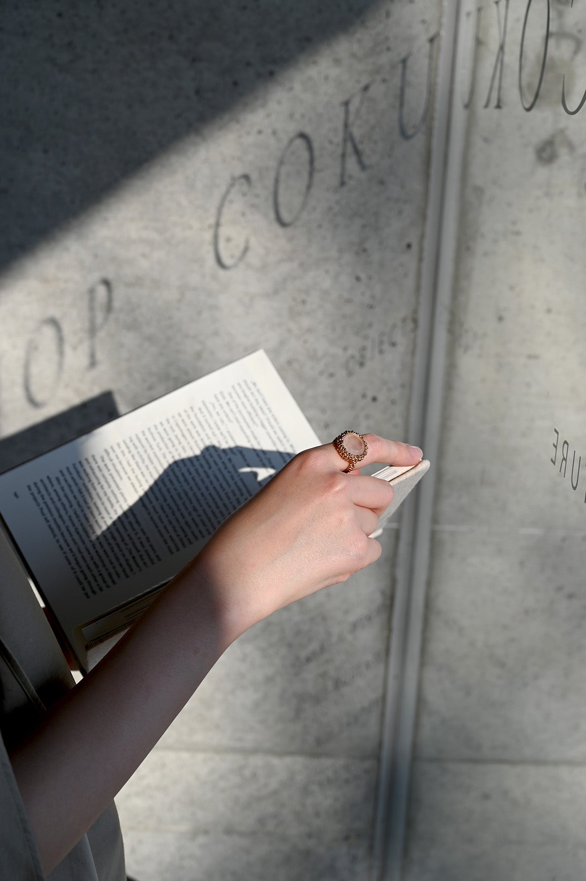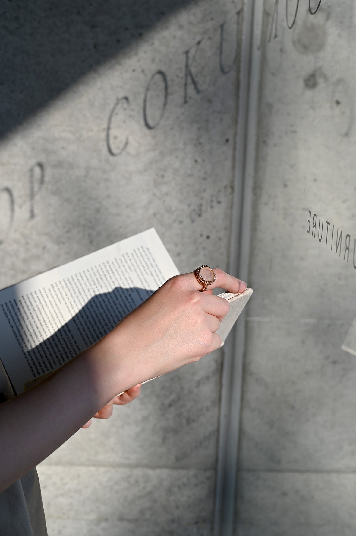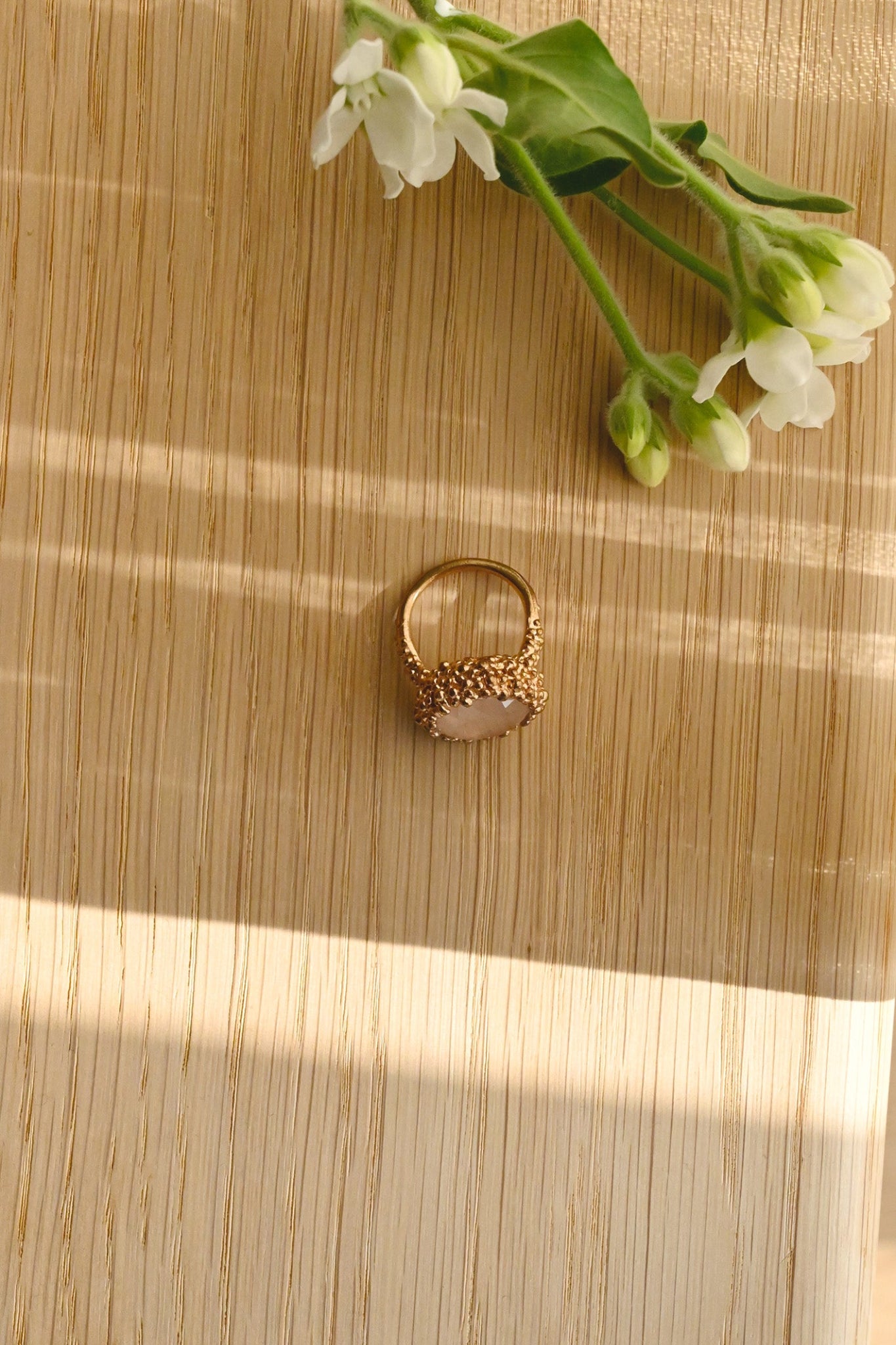 ダニエラの天然石リングが全身コーディネートを完成させてくれます。