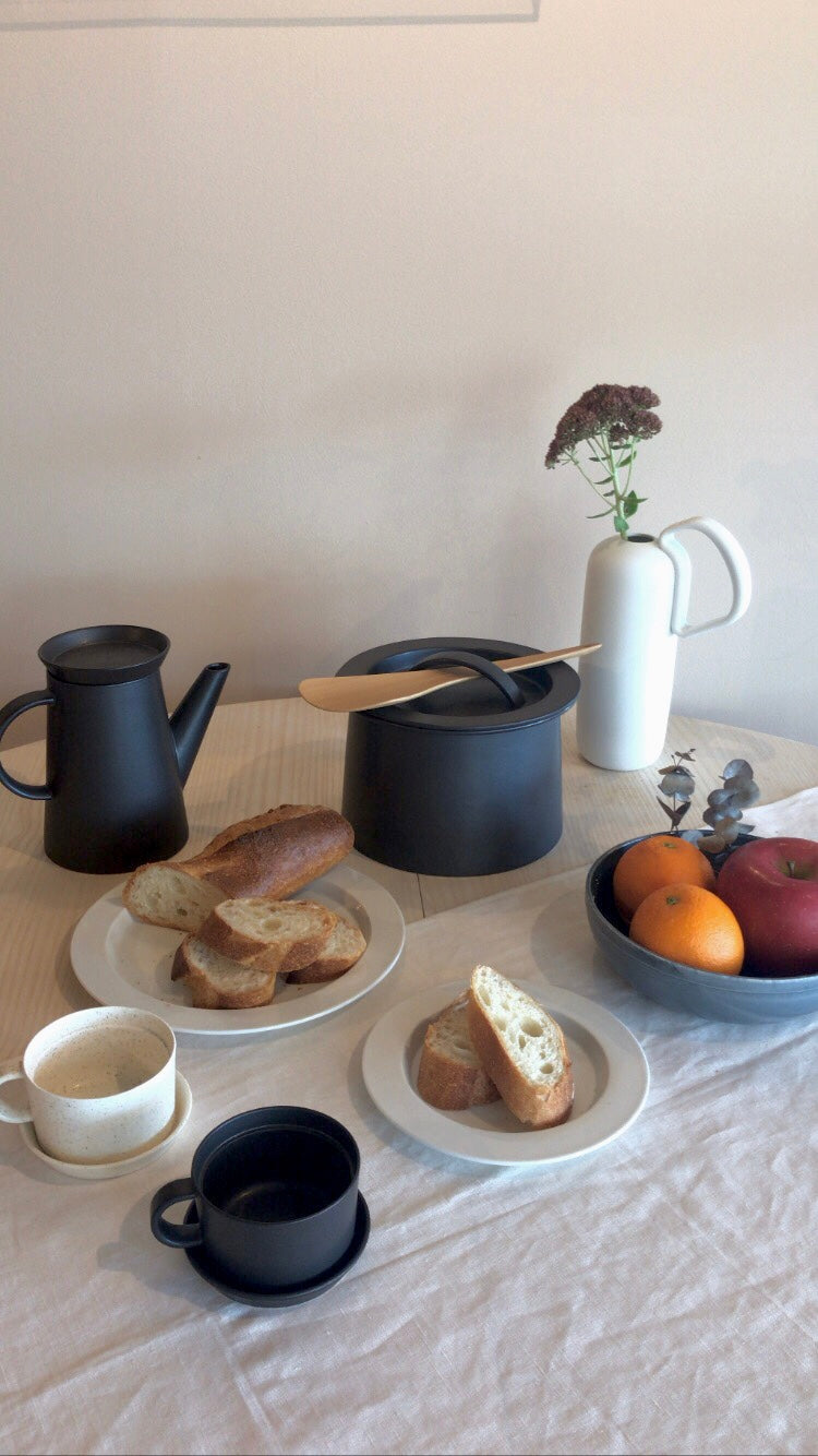 何気なく使う日常の道具をおしゃれに。スイスを拠点に活動するデザインユニット「BIG-GAME」がデザインした、ドリップコーヒーを楽しむためのキッチンツールです。コーヒーカップとお皿、コーヒーフィルター、ケトルのどのデザインもシンプルでスタイリッシュ。このベーシックなフォルムをつくるために、有田の職人にしかできない最先端の製陶技術と先進的な素材が用いられています。耐火度の高い土を使用しているため、直火やオーブン、レンジでの使用も可能です。よく考えられた無駄のないデザインで、コーヒーを純粋に楽しむことができます。磁器でつくられたコーヒーフィルターは、目には見えない孔でコーヒーを濾過し柔らかな味わいがプラスされた美味しいコーヒーをつくりだします。このフィルターは、同シリーズのコーヒーカップやケトルと合わせてお使いいただけるようにデザインされています。紙フィルターを使わずに轢いた豆を直接入れて濾過することができます。目詰まりが気になる方は紙フィルターをご使用されるか、もしくはお湯にくぐらせてゆすぐことで、フィルターの目詰まりが解消されて再びご使用いただけます。