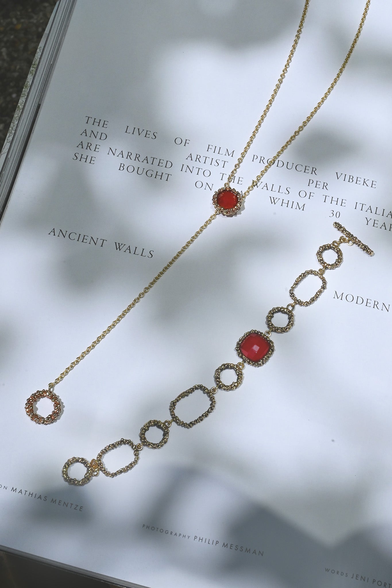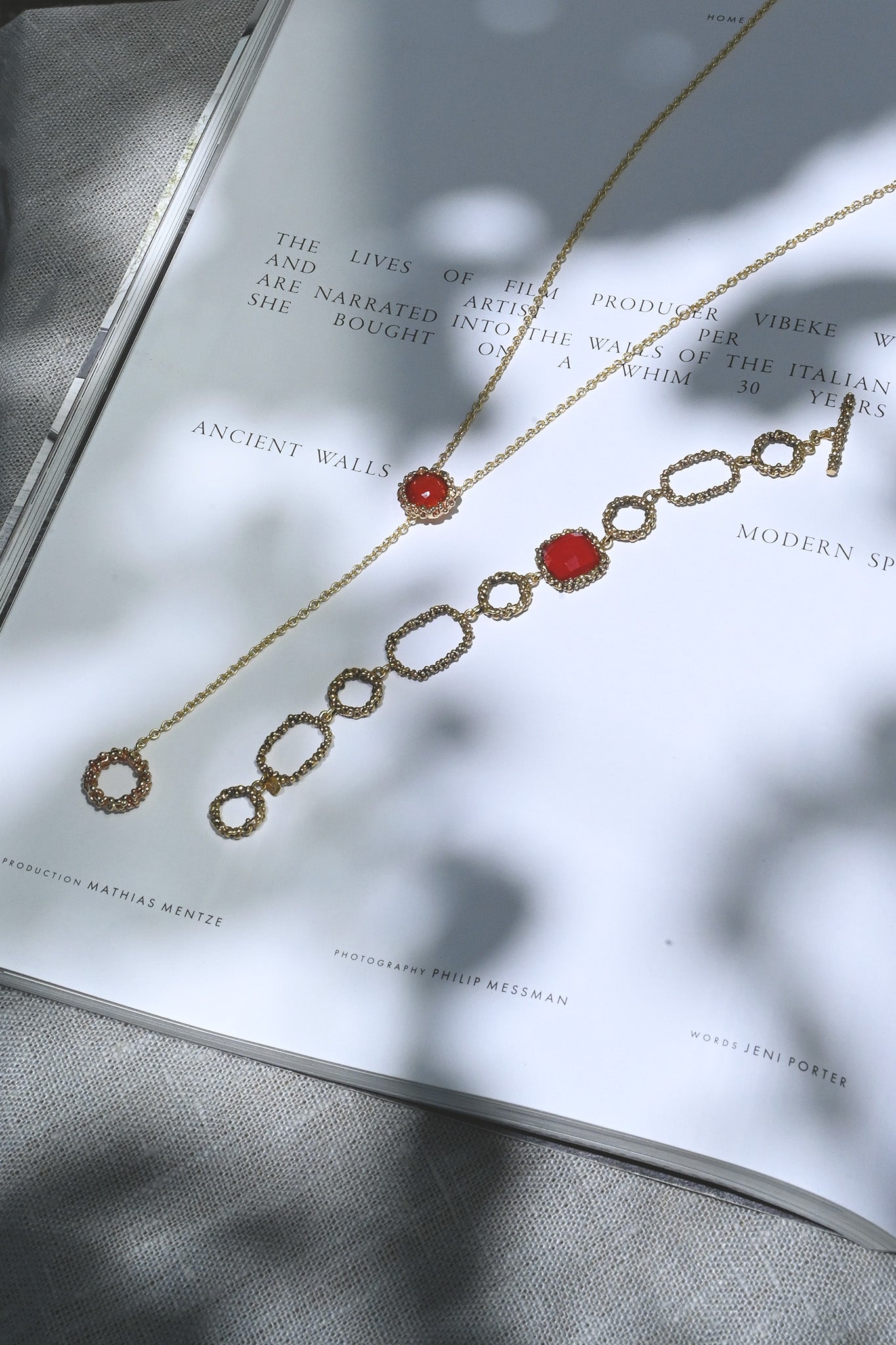 ダニエラのコレクションは、コレクション毎に発表されるメタルの色と美しい天然石のコーディネイトで完成されます。