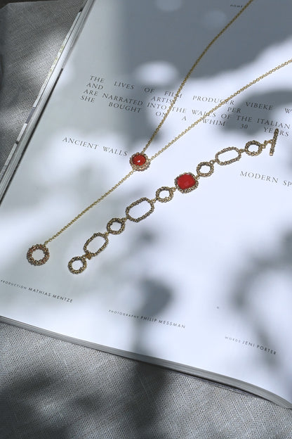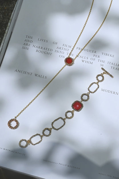ラウンドとスクエアが連なり、ストーンが組み合わさったデザインのブレスレット